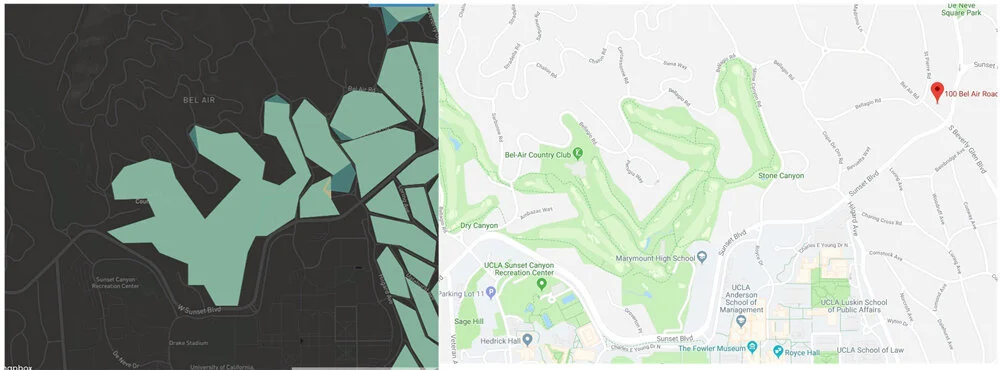For more information see links listed below. Interactive map showing areas in Bel-Air are in the CURBED LA’s article.