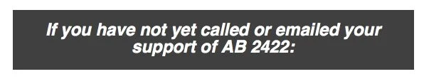 Comments can still be submitted up until the April 24th hearing. Please send your personal message to all of the members and staff of the Water, Parks, and Wildlife (WPW) Comittee, asking them to vote YES in support of AB 2422.