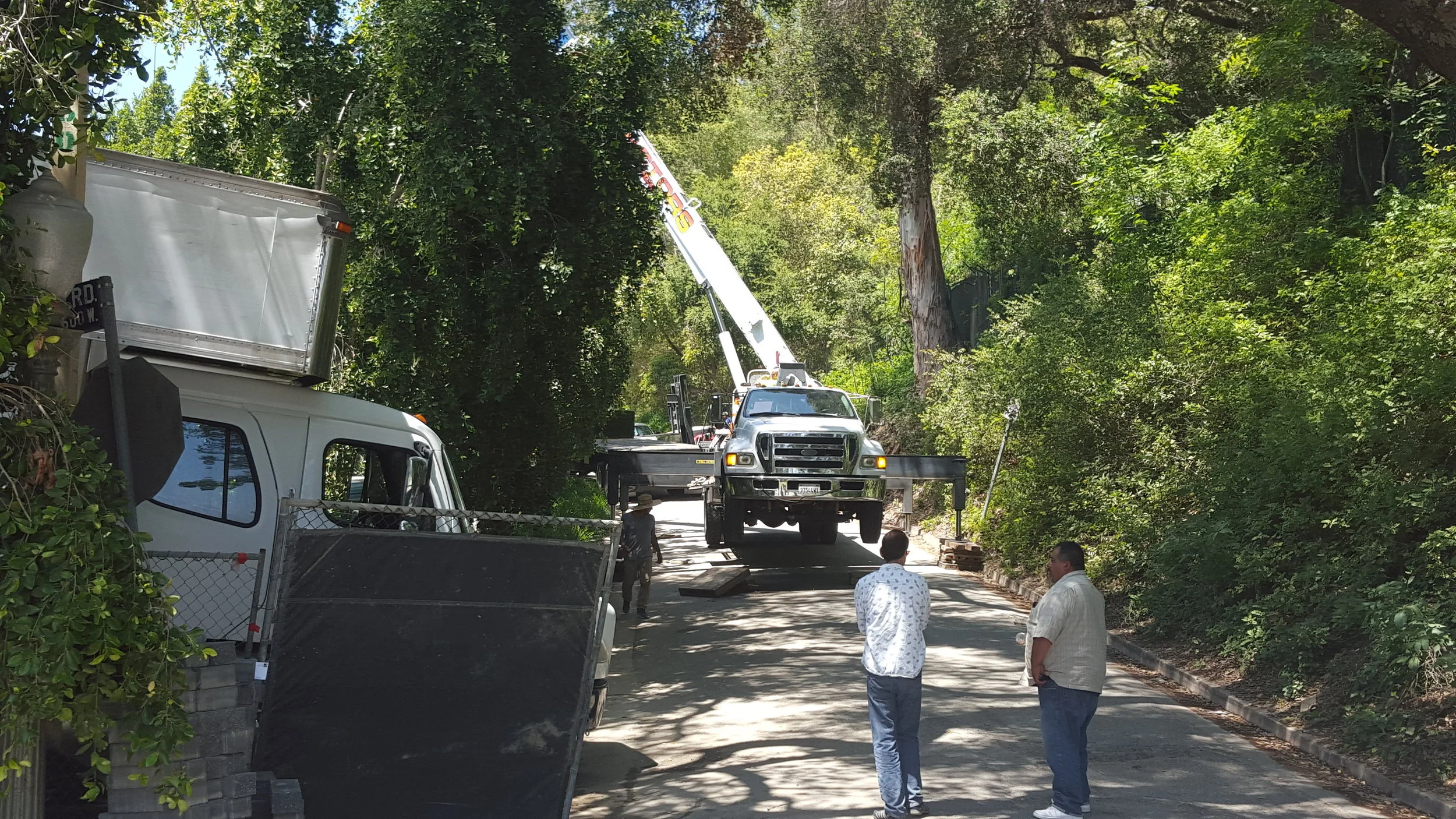 Wednesday afternoon the development at 10701 Bellagio, which is associated with Niles Niami, took it upon themselves to COMPLETELY shutdown Carcassonne Road for nearly three hours with a crane and semitrucks. There was no warning, no notification, no detour signage, and NO PERMITS. Anyone attempting to access the road was simply waved-off with zero explanation. Angry residents were met with contempt from the construction workers, as bikers and neighborhood walkers were forced to walk through and under the operating crane. No provisions were taken for pedestrian safety. Assemblymember Bloom, Councilmember Koretz, LAPD, and CAL OSHA have all been contacted and we are hopeful this incredibly dangerous situation is not allowed to happen again. It’s a shame the developer has decided that the lives of his neighbors are far less valuable than his sod delivery.