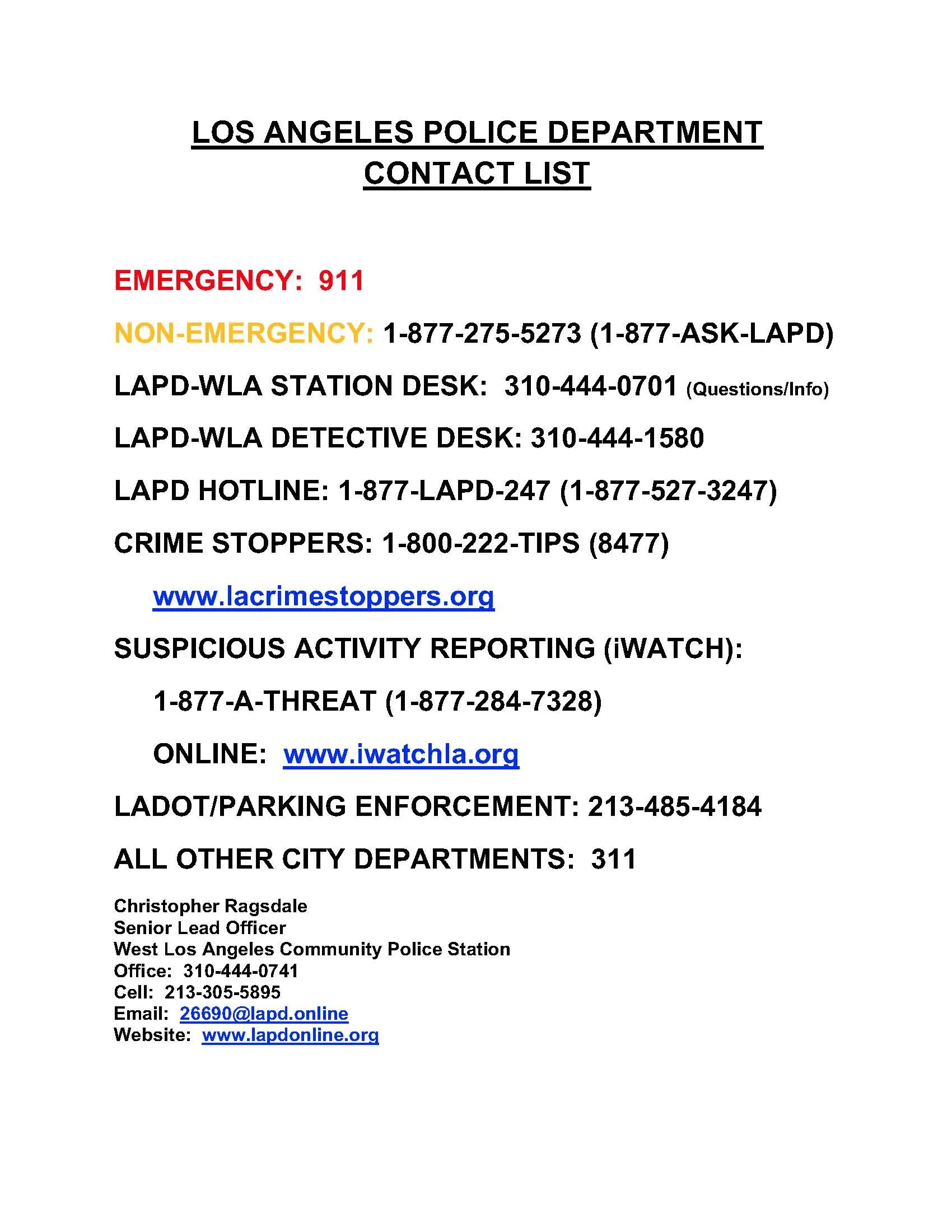 Click here to link to PDF file of LAPD Contact List.
