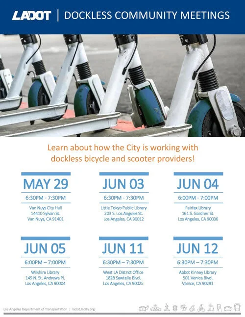 LADOT is conducting dockless scooter community meetings around the city.