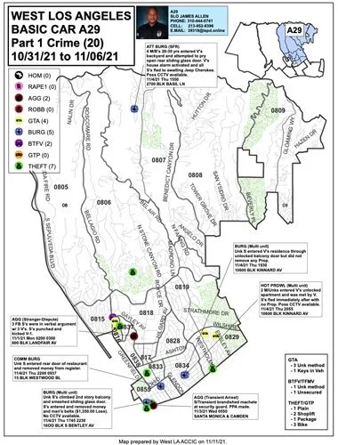 Bel-Air’s Senior Lead Officer (SLO) is Officer James Allen 39318@lapd.online