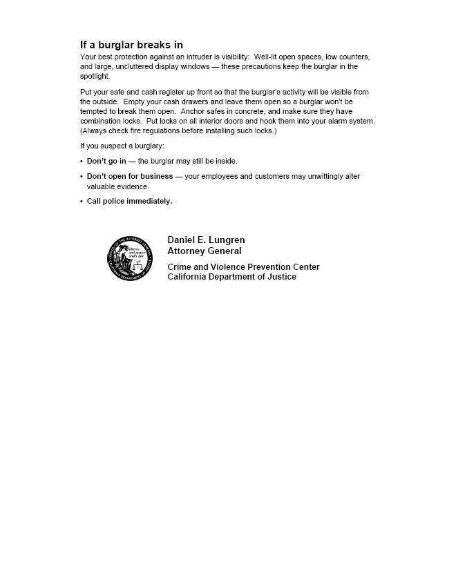 Click here to see PDF version of Burglary Prevention from the California Attorney General’s Office.