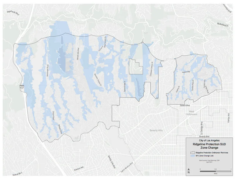 In response to an adopted City Council Motion (Council File # 11-1441-S1), Los Angeles City Planning has prepared and released the Ridgeline Protection Ordinance (CPC-2021-3001-CA), which establishes a new Ridgeline Protection Supplemental Use District (SUD) in the Los Angeles Municipal Code. The Ridgeline Protection SUD will contain development regulations to preserve and protect the natural crests of the mountains that surround and bisect the City of Los Angeles.